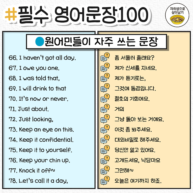 외국에서 많이 사용하는 실전 영어회화 100문장