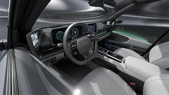 실내는 마치 거주공간과 같은 따스함과 편안함을 전해줄 수 있도록 부드러우면서 풍부한 느낌의 패딩 패턴이 적용됐으며, 운전자 중심의 파노라믹 커브드 디스플레이와 크래시패드 측면에 일체형으로 탑재된 디지털 사이드 미러(DSM)가 적용돼 실용성과 개방감을 높였다.