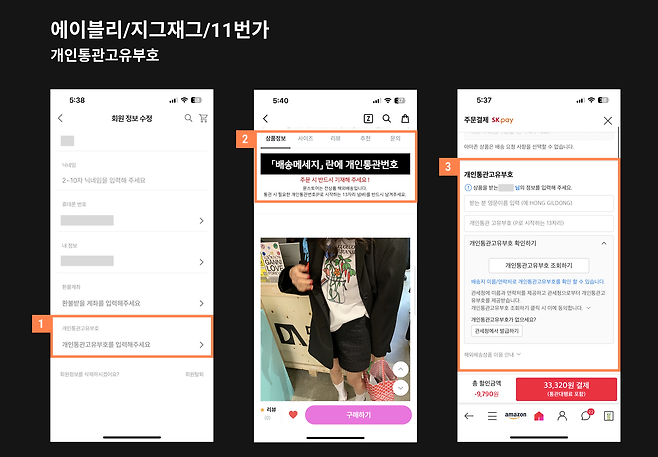 4-1. 에이블리/지그재그/11번가 : 개인통관고유부호