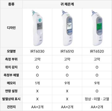브라운 체온계 종류 가격 차이 비교 - 6510 6520 6030