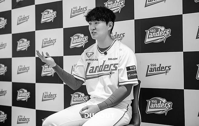 SK와 SSG라고 하면 무조건 (김)광현 선배님이 먼저 떠오르잖아요. 저도 광현 선배님만 바라보면서 꿈을 키워 왔어요. 지금 이렇게 한 팀에서 함께 운동하면서 선배님과 시합에도 나갈 수 있다는 게 너무 신기하죠.