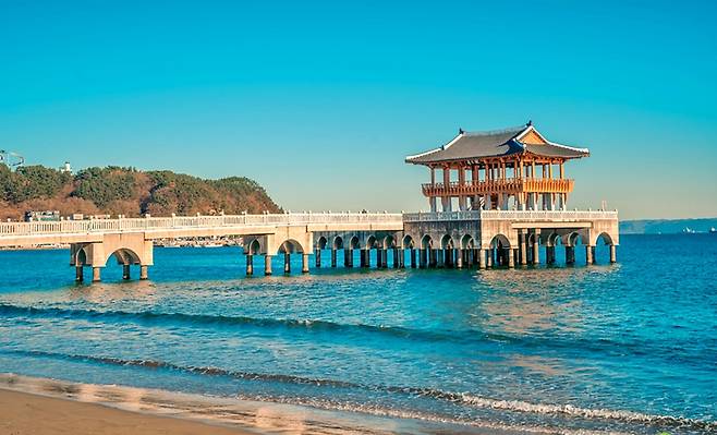 ‘영일정’이라는 또 다른 이름을 가진 이곳은 바다를 향해 80m 길이의 교각을 따라 걸어가야 닿을 수 있어, 전망대에 들어서는 순간부터 특별한 경험이 시작된다.