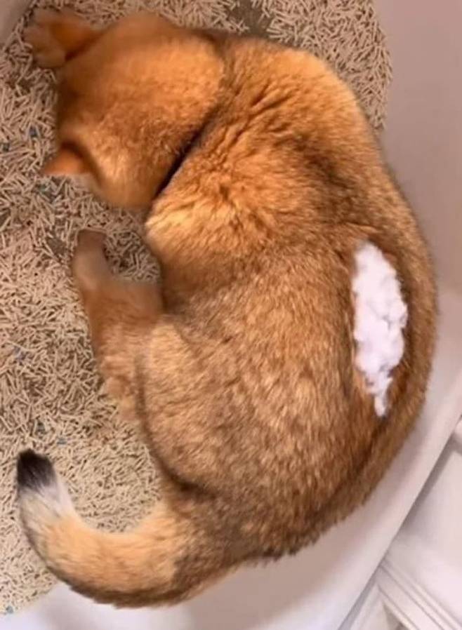 공개된 사진 속에서 고양이는 주황색 털을 자랑하고 있었는데요. 문제는 등에 하얀 털들이 구불구불 튀어나오듯이 자리잡고 있었죠.