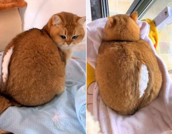 고양이의 뒷모습을 접한 누리꾼들은 "이거 꿰매야 하는거 아냐", "등이 터져서 털이 나온 것인가요", "이거 왜 그런거야" 등의 다양한 관심을 드러냈는데요.