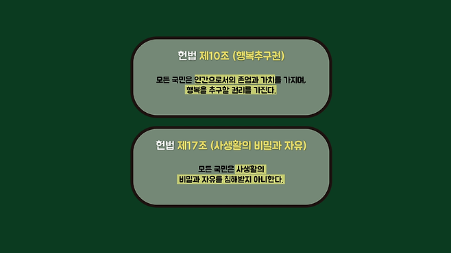 두 권리의 개념부터 정리해보면 먼저 초상권은 얼굴이나 목소리 등 어떤 개인임을 식별할 수 있는 경우 그 대상만이 독점적으로 갖는 권리입니다. 권리가 명확하게 법률로 규정된 것은 아니지만, 오래전부터 헌법 제10조(행복추구권)와 제17조(사생활의 비밀과 자유)를 바탕으로 인정해오고 있습니다.
