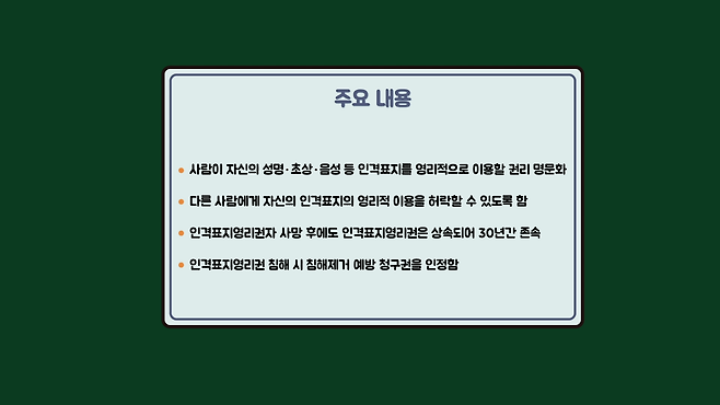 이와 관련해 법무부에서 퍼블리시티권을 ‘인격표지영리권’으로 칭하고, 이를 명문화하는 민법 개정안을 2022년 12월 26일부터 40일간 입법 예고했습니다.