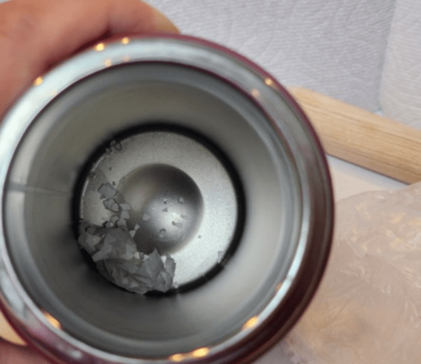 이렇게 건조시킨 껍질은 더 단단하고 바삭해져서 흔들었을 때 더 잘 부서지고 병 안쪽에 잘 퍼진다. 자연스럽게 청소 효율이 높아지고, 오염 걱정도 덜 수 있다.