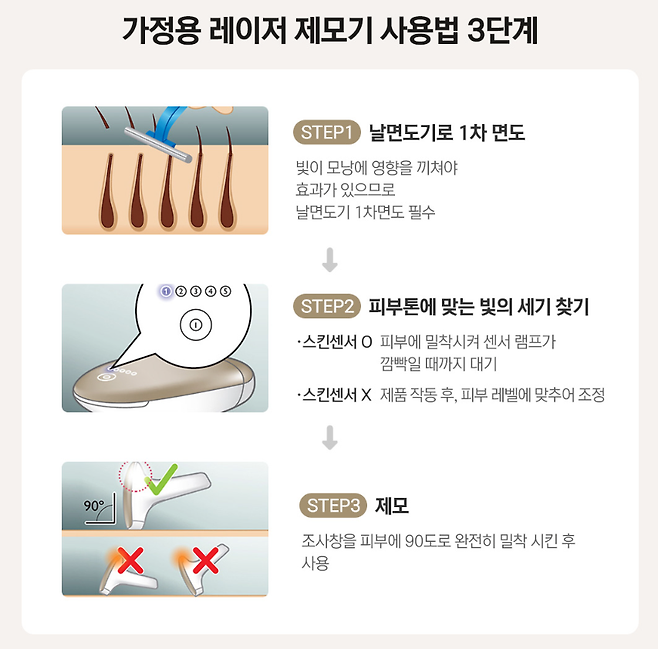 하지만 요즘은 다르다. 이젠 부담 없는 가격으로 제모도 ‘혼자 조용히’ 할 수 있는 시대! 아무도 모르게, 내 방에서, 내가 원하는 부위만, 내가 원하는 강도로, 심지어 넷플릭스 보면서 ‘레이저 한 방’이면 된다.