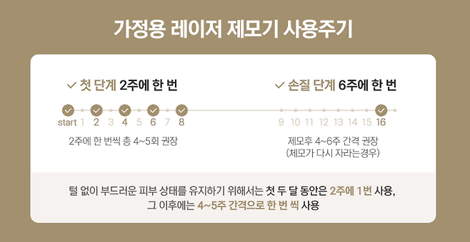 소비자들이 셀프 레이저 제모기를 처음 사용할 때 가장 궁금해하는 것 중 하나는 “언제쯤 효과를 볼 수 있나요?”라는 질문이다. 이 질문에 대한 정답은 ‘빠르면 4주, 본격적인 변화는 12주 이후’라는 것이다. 일반적으로는 주 1회 기준 12주간 지속적인 사용을 통해 털이 덜 나거나, 가늘어지는 효과가 나타나기 시작한다. (다만 체모의 성장주기는 사람마다 다르며, 부위에 따라 더 긴 시간이 걸릴 수 있다.)_