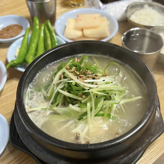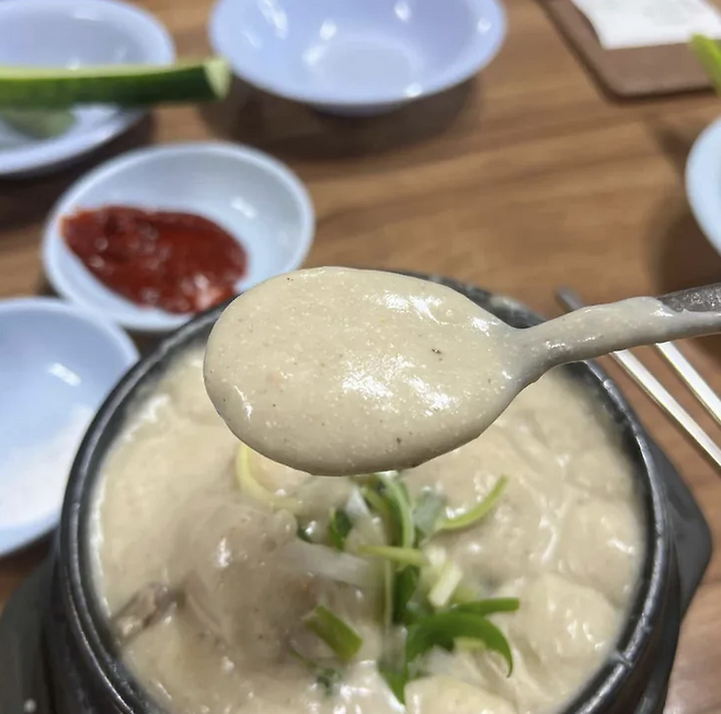 깔끔한 맑은 국물에 들깨가 살짝 들어가 있어 부담 없이 먹기 좋고, 조용한 분위기 덕분에 데이트 장소로도 인기 많아요.