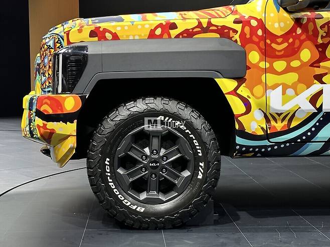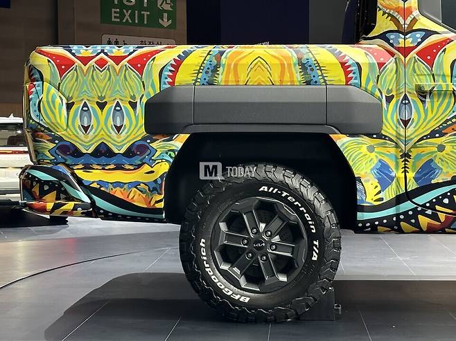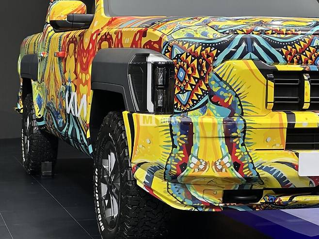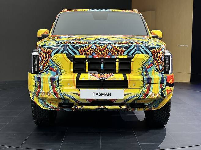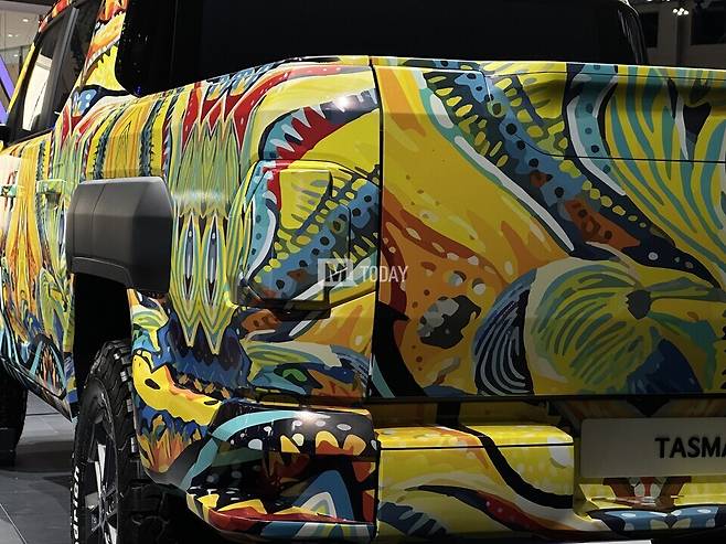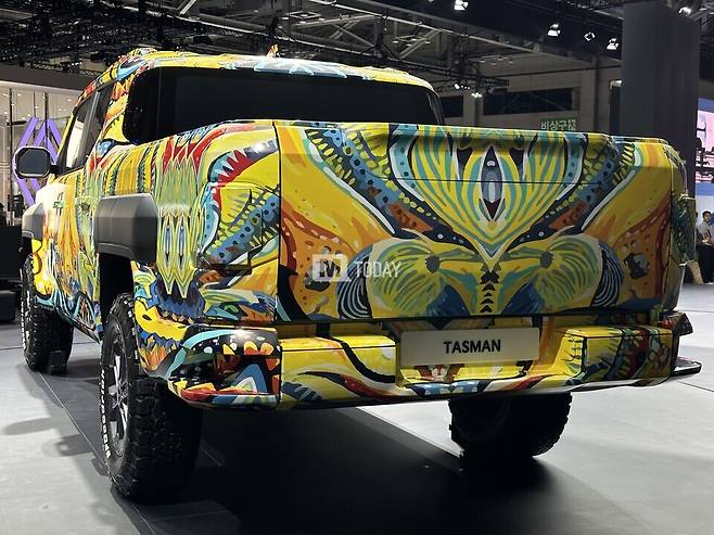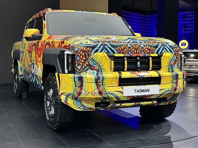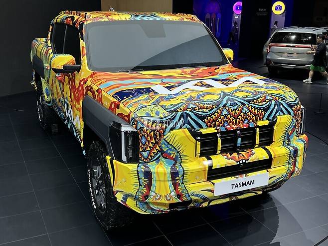 [M투데이 임헌섭 기자] 기아가 개발 중인 브랜드 첫 픽업트럭 '타스만'이 출시 전부터 많은 주목을 받고 있는 가운데, 2024 부산모빌리티쇼에서 전용 위장막 차량이 국내 최초로 공개됐다.