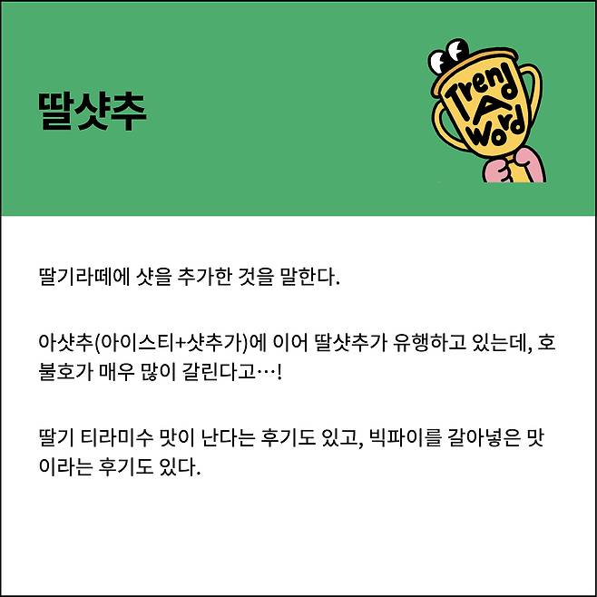 오늘의 트렌드 어 워드 ‘딸샷추’ 지금 바로 시작해보겠다.