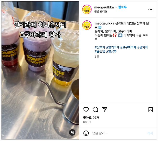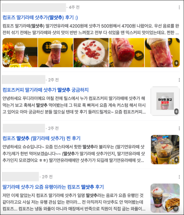 다양한 사람들이 딸샷추를 직접 마셔보고 후기를 올리고 있다.