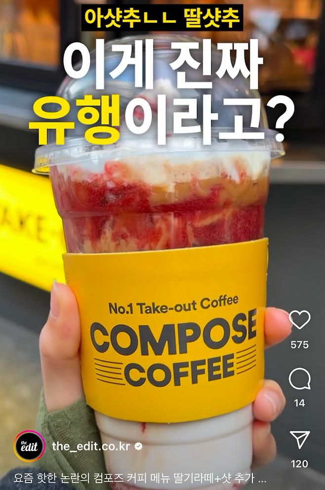아샷추에 이어 딸기라떼에 샷추가를 한 딸샷추가 뜨고 있다.