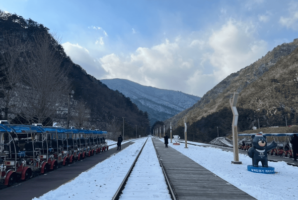 이후에는 정선 레일바이크를 타고 설경을 감상하는 것도 추천드리는데요. 기찻길을 따라 달리며 강과 산을 감상하는 코스는 겨울에 더욱 운치 있으니 정선의 조용한 분위기 속에서 느긋하게 하루를 보내고 싶다면 꼭 한 번 방문해보시길 바랍니다.