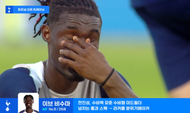 올여름 손흥민의 뒤를 이어 토트넘와 연을 끝내려 하는 비수마다. 그는 앞서 한국 투어 도중 손흥민이 토트넘을 떠난다고 발표하자 훈련 도중 눈물을 흘려 화제를 모았다. 토트넘 이적 후 쭉 함께했던 주장 손흥민과 이별에 진심으로 슬퍼한 것.