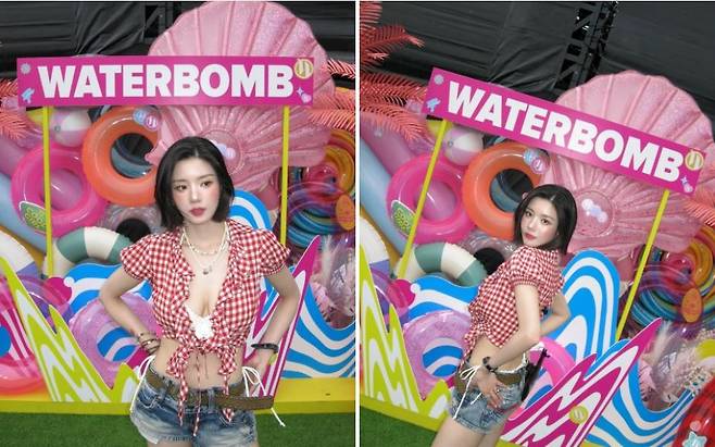 매년 워터밤의 상징적인 아티스트로 자리매김하며, 워터밤 무드에 맞는 레드 체크 블라우스로