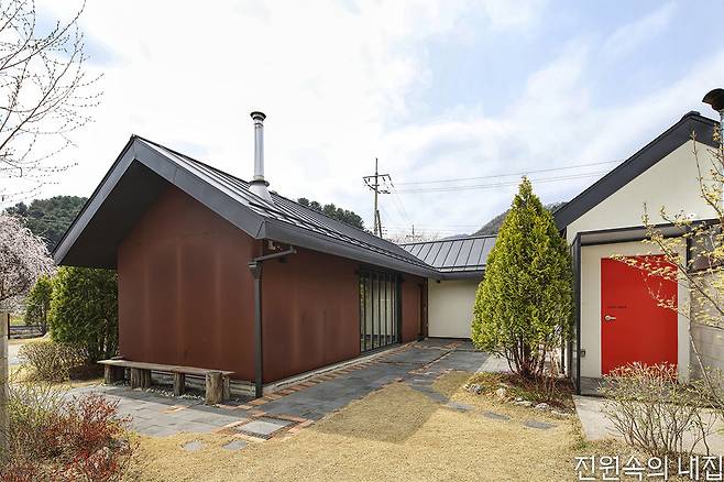 두루커피의 역사는 15년을 훌쩍 넘는다. 원래 서울 북촌에 있던 카페 및 공방이었지만, 카페와 로스팅 공방과 집이 서로 나뉘어 불편했고, 북촌이 점차 명소가 되면서 복잡해지는 분위기에 부부는 다른 공간을 찾고 만들 준비를 했다. 알맞은 땅을 찾아다니다 2년 만에 가평 이곳에 자리를 잡았다. 그리고 ‘아백제’ 성상우 소장과 함께 집을 그리고 지었다. 이곳에 터를 잡은 지 4년. 카페와 공방 그리고 집으로, ‘나눈 듯 하나’인 이곳이 처음 지어졌을 때 거뭇했던 코르텐강 벽은 이제 자연스러운 붉은 빛이 되었고, 그만큼 부부의 전원생활도 무르익고 있다.