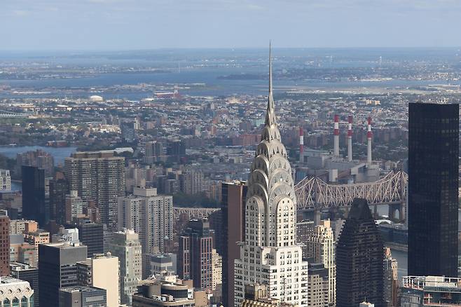 단연 크라이슬러 빌딩을 꼽겠습니다. 이 빌딩의 상층부는 뉴욕을 무대로 하는 ‘미드’에도 많이 등장하는데요, 1930년에 완공되었으니 한 세기 전의 빌딩인데도 전혀 시대에 뒤떨어지지 않고 여전히 우아한 아름다움을 자랑합니다. 연필 모양의 미끈한 빌딩인데 상층부의 곡선 마무리는 마치 거대한 조각 작품 같습니다. 아르데코 스타일이 고층 빌딩에 어떤 방식으로 접목되었는지를 보여주는 좋은 사례이기도 하지요.