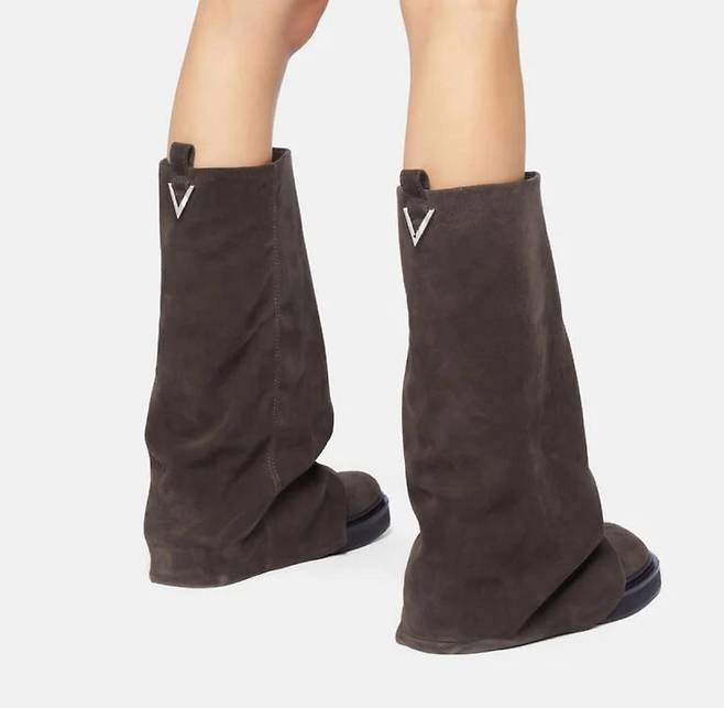 넉넉한 스웨이드 워머를 신은 듯한 부츠이다. 와이드하고 자연스러운 핏이 특징이다. 미니멀하면서도 유니크한 디자인이지만, 어그 스타일의 포인트로 귀여움을 더했다. 청키한 5cm 플랫폼 아웃솔을 사용하여 키높이 효과가 있다. 높이감이 있음에도 아웃솔이 유연하여 편안한 착화감을 자랑한다. 가격 176,000원.