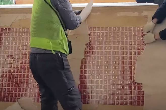 이들의 수법은 치밀했습니다. 두께가 30mm인 합판 두 장을 붙여 내부에 담배 320갑을 숨길 수 있는 공간을 만들고, 이를 다시 얇은 합판으로 마감해 겉보기에는 일반 합판처럼 보이게 위장했습니다.