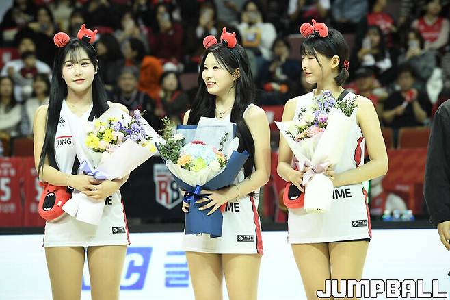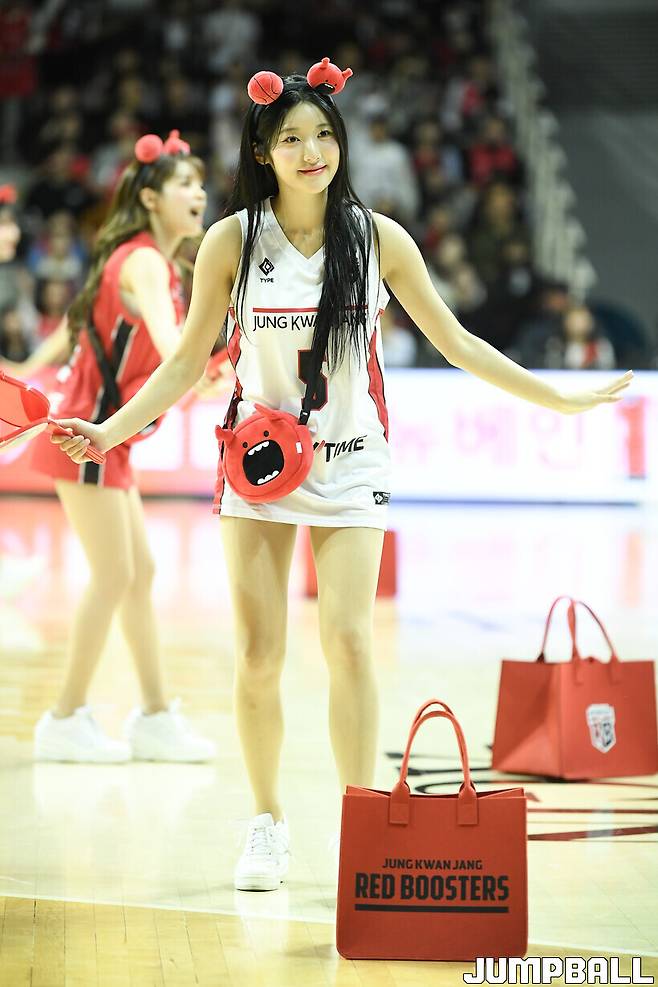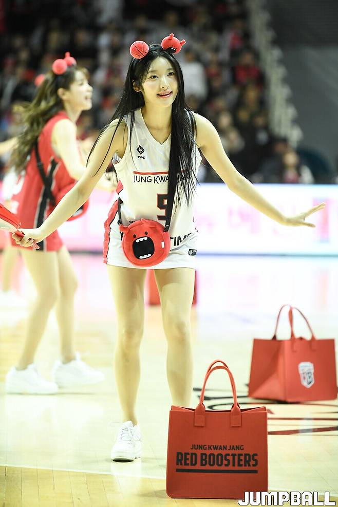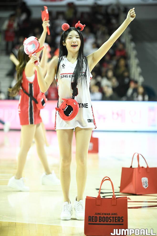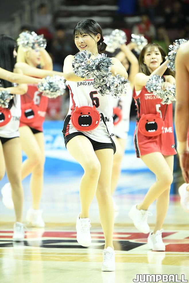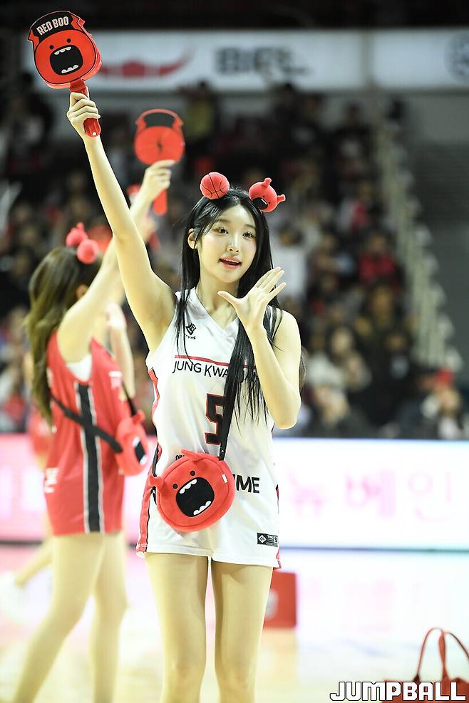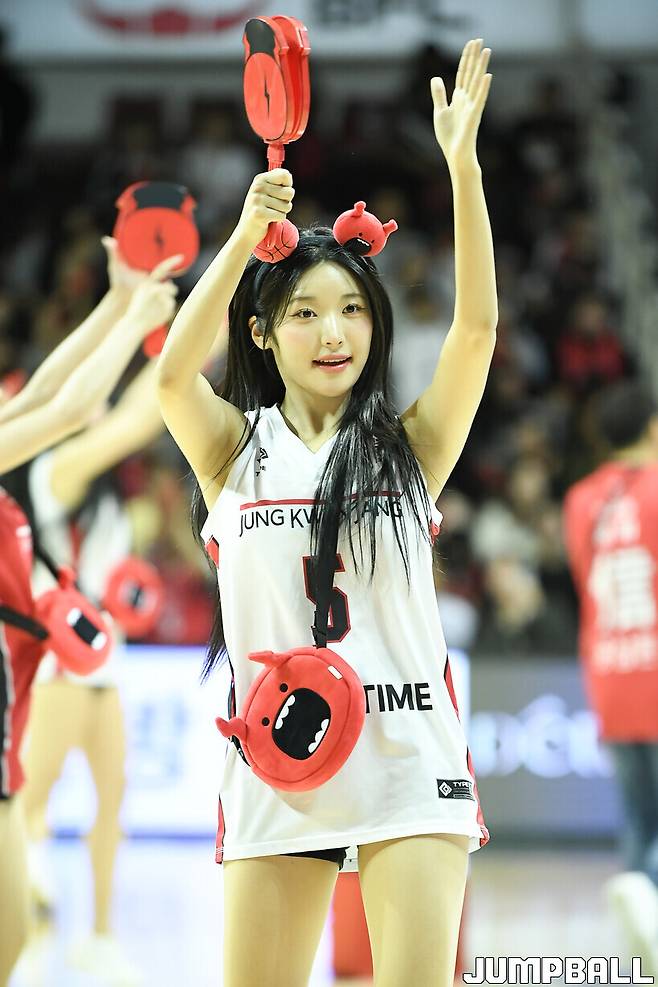 [점프볼=안양/유용우 기자] 10일 안양 정관장 아레나에서 열린 2024~2025 KCC 프로농구 안양 정관장과 원주 DB의 경기, 정관장 치어리더들이 응원전을 펼치고 있다.