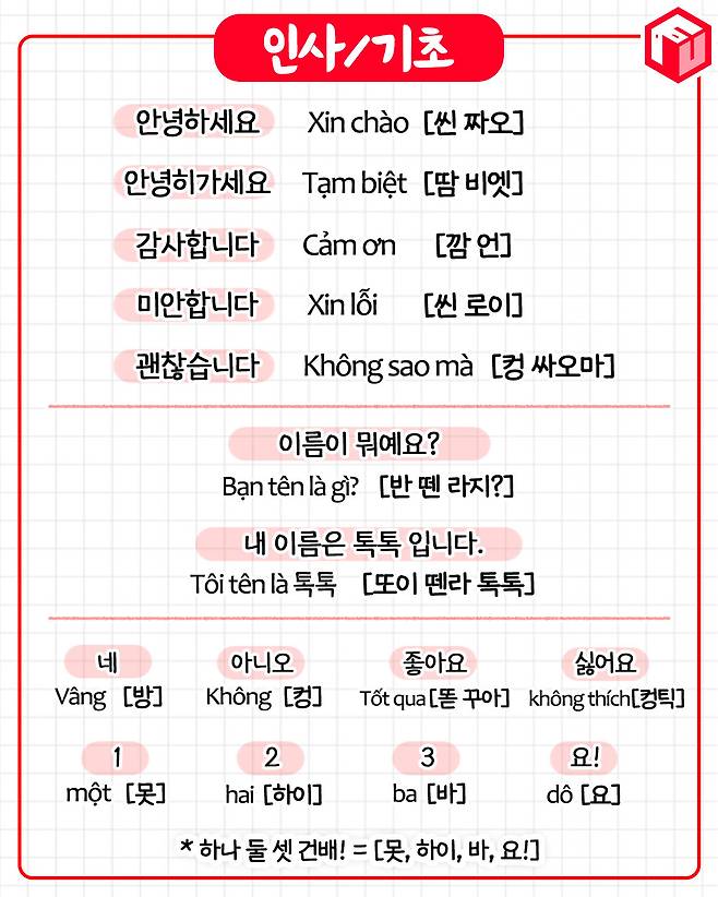 해외 여행을 온 외국인들이 우리나라 말을 구사하면 더 반갑고, 고마운 마음이 들곤 합니다. 베트남 사람들 역시 마찬가지일텐데요. 때문에 필요한 간단한 회화를 기억해 가는 것도 베트남 여행 준비 중 하나이죠.