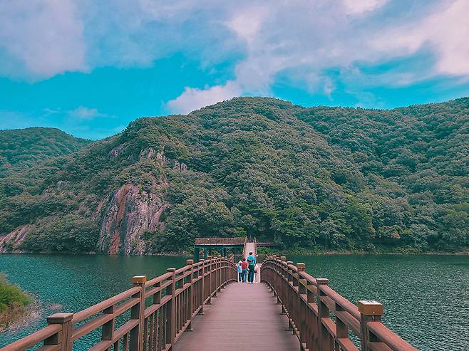또한 용마루길은 추월산과 금성산성을 함께 바라볼 수 있어 포토 스팟으로도 인기가 많습니다. 호수와 산, 길이 한 화면에 잡히는 풍경은 마치 한 폭의 수묵화를 보는 듯 고즈넉합니다.