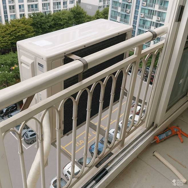 실외기 주변 1m 이내에는 물건을 두지 말고, 벽면과는 최소 10cm 이상 거리를 확보해야 한다. 그늘막을 씌울 때는 위쪽만 덮고 옆면은 개방한 통풍 구조여야 한다. 사방을 막는 덮개는 오히려 열기를 가두고 전기요금을 더 높인다.