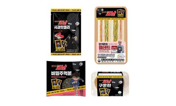 편의점 프랜차이즈 CU는 애니메이션 IP인 ‘명탐정 코난’과 공식 제휴를 맺고 젤리 제품을 출시한 바 있다. 젤리 제품의 이름은 ‘코난 사과맛 젤리’로, 작품의 주인공인 코난이 아이가 되는 알약을 먹었다는 콘셉트에 기반해 애니메이션 속 알약 모양으로 기획된 제품이다. 애니메이션 속 캐릭터들을 담은 76종의 홀로그램 스티커 중 하나가 랜덤하게 들어 있다. 편의점 기준 판매가는 1,900원이다.