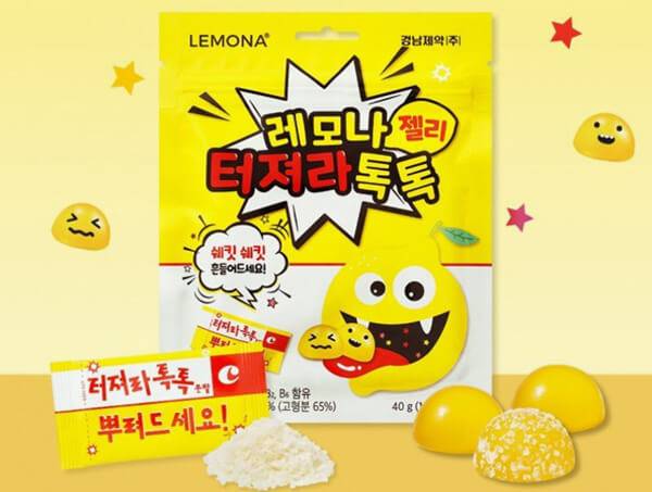 경남제약은 레모나 젤리의 인기에 힘입어, 상큼한 사우어(신맛) 젤리를 출시했다. 비타민C와 비타민B6, 비타민B2의 하루 영양 성분 기준치를 충족할 수 있는 제품이다. 톡톡 튀는 파핑 가루를 젤리에 뿌려서 먹으면, 씹는 순간 입 안에서 새콤함이 튀는 느낌을 느낄 수 있다. 위생적으로 보관하고 휴대할 수 있는 지퍼백 포장을 적용한 제품이다. 편의점 CU에서 만날 수 있는 제품으로, 가격은 2,000원이다.