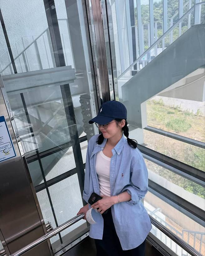 공개된 사진 속 장나라는 네이비 캡모자에 연청 셔츠를 매치한 꾸안꾸 캐주얼룩으로 등장.