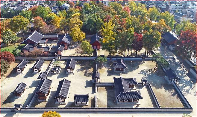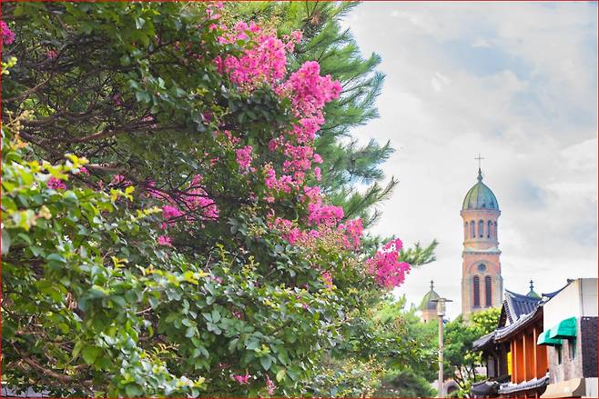정전 앞 은행나무 아래에서 찍는 전경은 위엄 있고, 돌담길을 따라 담장 너머로 보이는 배롱나무는 전주에서만 만날 수 있는 고즈넉한 풍경입니다.