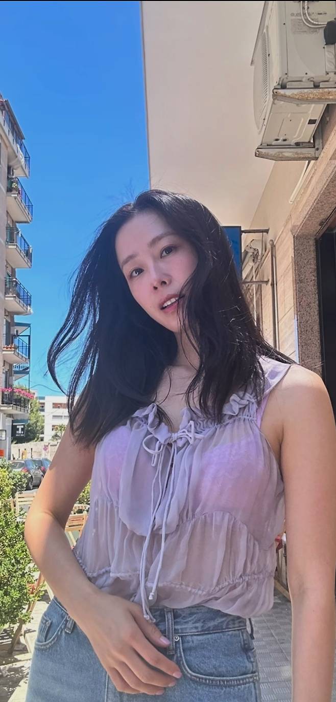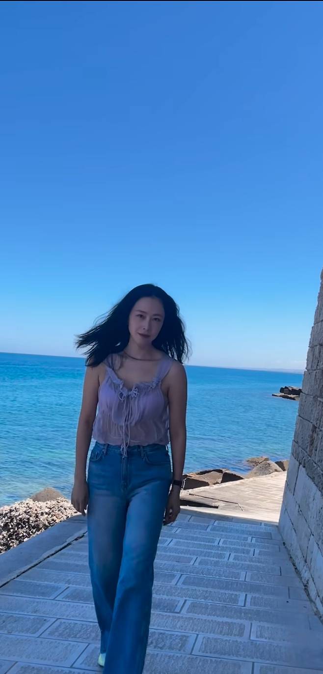 배우 홍수현이 25일 인스타그램에 "🩵"이모티콘과 함께 동영상을 게재했습니다.