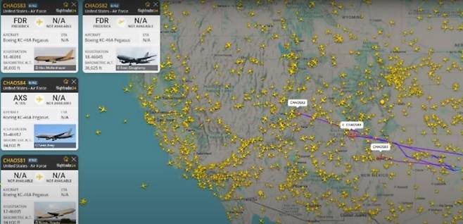 이날 미 본토에서는 KC-46A 공중 급유기 4대가 미 본토 캘리포니아 트래비스 공군 기지에서 이륙했고, 오클라호마 주 알투스 공군기지에서도 4대의 KC-46A 공중급유기들이 이륙해 중동으로 향했습니다.