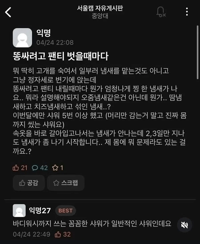 이상하게 팬티에서 냄새가 나요