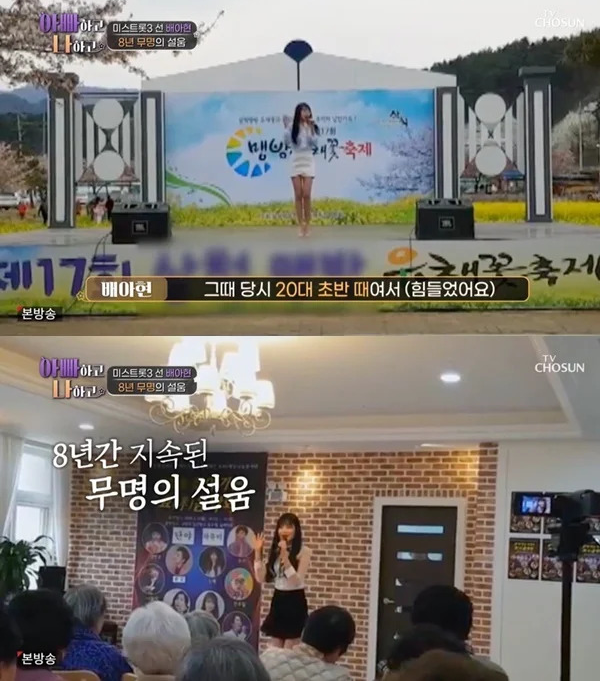 가수 배아현은 최근 방송된 TV조선 ‘아빠하고 나하고’에 출연해, 8년간의 무명 생활을 담담히 털어놨다.