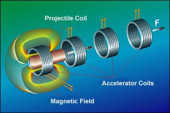 탄환 가속: 자기장과 전류의 상호 작용으로 탄환에 강력한 힘이 가해져 엄청난 속도로 가속됩니다.