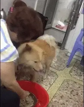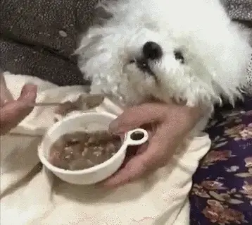 강아지들은 밥을 입으로 받아먹는 게 당연한 일상! 게다가 간식도 계속 추가되어 문 밖에 나가기 힘들 정도죠.