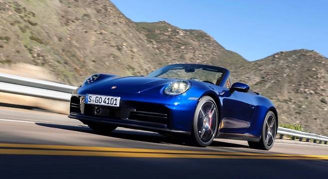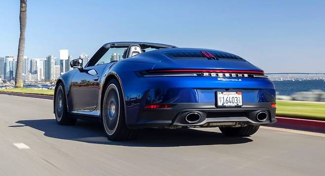 이전 911 카레라 S도 결코 느리지 않았지만, 이번 모델은 샌디에이고 동쪽의 구불구불한 도로에서 엔진을 7,500rpm의 레드라인까지 밀어붙일 때 핫로드처럼 느껴집니다. 스포츠 배기 시스템이 기본으로 제공되며, 이는 소유자들이 992.1세대 911 S를 구매할 때 업그레이드된 시스템을 압도적으로 선택했기 때문입니다. 지붕을 열고 산길을 오르며 배기 파이프의 달콤한 음색을 직접 들을 수 있습니다. 포르쉐의 수평대향 6기통 엔진은 반응성이 뛰어나고 회전 속도가 빠르며, 기본 제공되는 8단 듀얼 클러치 자동 변속기는 엔진과 완벽하게 조화를 이루어 자동 모드에서도 즉각적인 기어 변속을 제공합니다. 패들 시프터를 사용하여 직접 변속을 제어할 수도 있습니다. 기본으로 제공되는 브레이크 디스크는 더 커지고 넓어져 강력한 제동력을 제공합니다. 도심에서도 쉽게 감속할 수 있으며, 깊게 페달을 밟으면 자신감 있는 제동이 가능합니다.