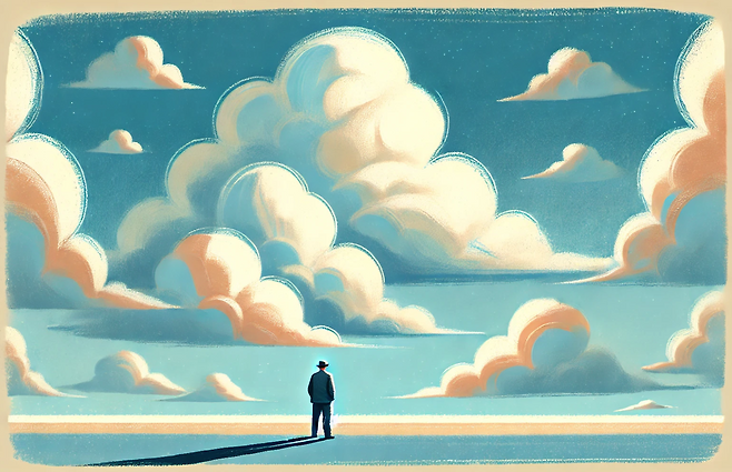 구름처럼 우리 주변에도 눈에 보이지 않는 무게들이 존재합니다. 일상 속에서 우리가 느끼는 크고 작은 고민이나 부담도 겉으로 보기엔 가벼워 보일지 몰라도, 그 속은 꽤나 무거울 수 있죠. 구름이 작은 물방울들의 집합으로 이루어졌듯이, 우리의 삶도 수많은 감정과 책임들이 쌓여 그 무게를 만들어 갑니다.