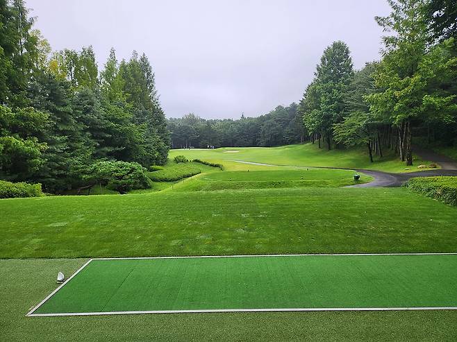 티 박스는 챔피언, 화이트, 시니어, 레드 4개로 구별되었습니다. 잔디 관리도 잘 되어있지만 약간 긴 편이어서 롱 티를 사용해야 공이 평소의 45mm 가량의 높이로 놓을 수 있었습니다. 파3 홀들의 길이가 약간 길게 느껴지는 150미터 이상의 거리가 절반이었고 가끔 인조 잔디 티 박스도 있습니다.