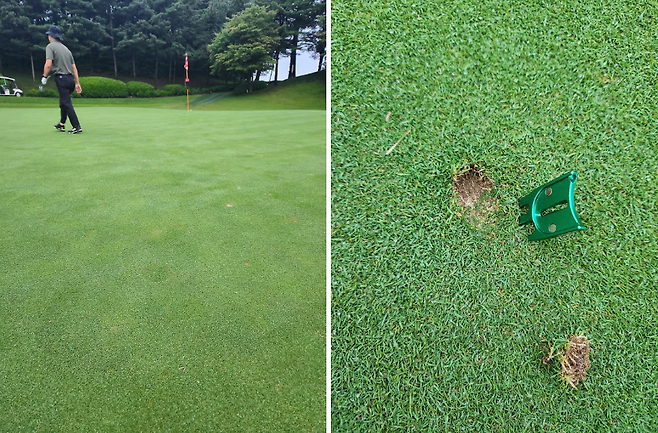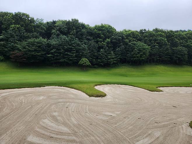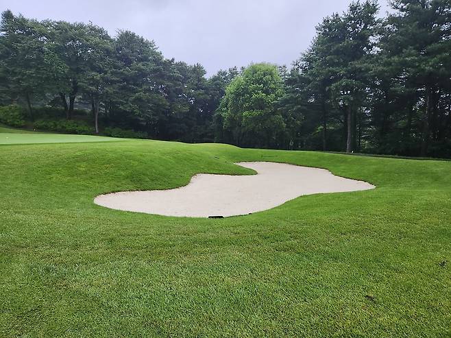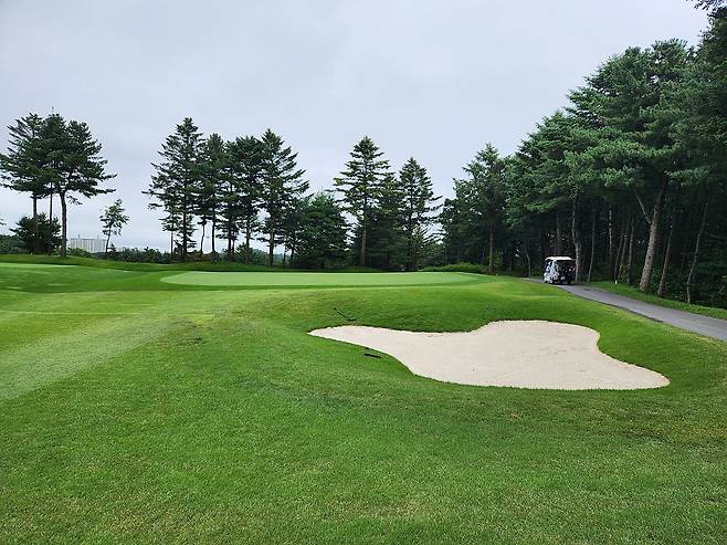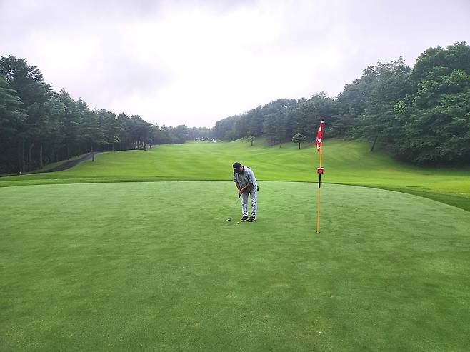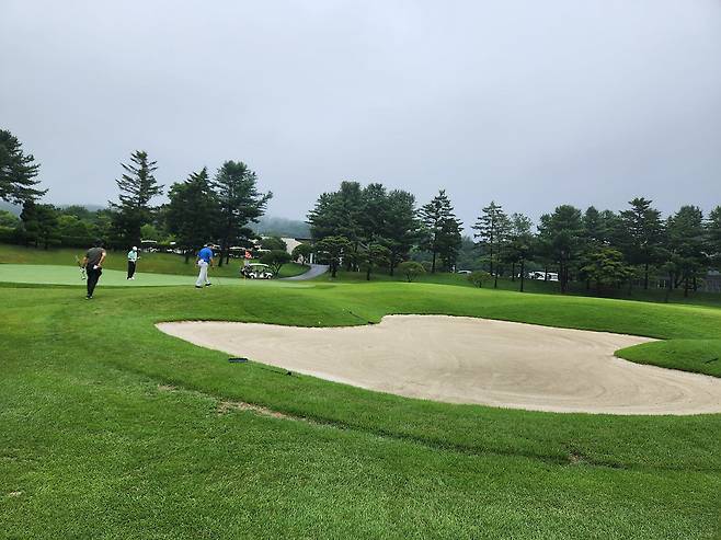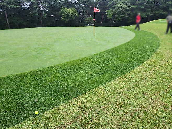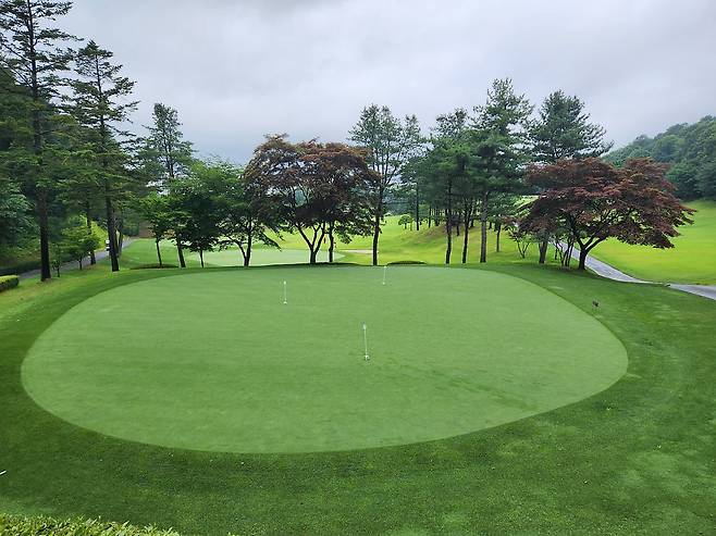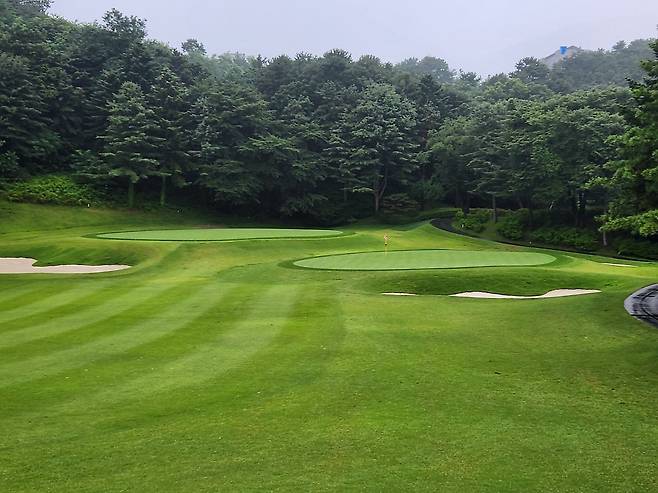 투-그린 시스템을 사용하는데 이날은 우측 그린을 사용했습니다. 자세히 보니, 좌측 그린이 주로 조금 더 뒤쪽에 있어서 홀 길이가 더 길었습니다. 잔디 관리는 매우 잘해서 굳이 그린을 놀러놓지 않아도 잘 굴렀습니다. 그린 속도는 2.8미터라고 했지만 새벽 티타임이라서 전반에는 이슬로 약간 느렸습니다. 후반에 물기가 약간 마르니 다시 빨라졌으며, 그린 난이도 역시 상승하네요. 투-그린 시스템의 골프장답게 그린 사이즈는 약간 작은 편이고 슬로프는 대체로 뒤에서 앞으로 내려오는 홀이 자주 보였습니다. 따라서 핀 높이지만 홀 양옆으로 간다면 라이가 많은 퍼팅이 자주 걸립니다.