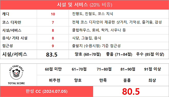 이상, 2024년 7월의 한성 CC 골프장 후기를 마칩니다. 읽어주셔서 감사합니다. ^^
