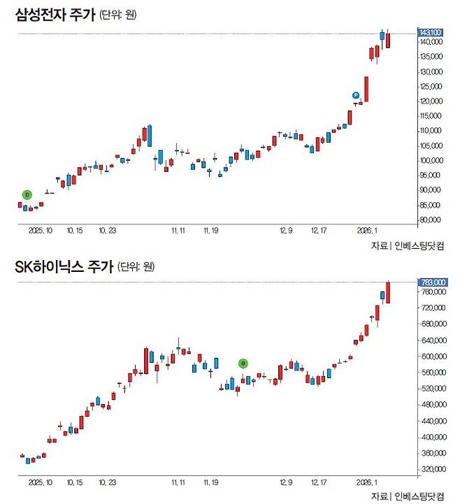 메모리 슈퍼사이클… 적토마처럼 질주하는 삼성전자·SK하이닉스 주가