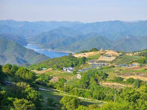 마을이 자리한 고도는 약 700~800m로, 주변에 시야를 가릴 것이 거의 없어 어디서나 시원하게 내려다보는 초록 산맥과 군위댐, 구름처럼 피어오르는 물안개가 압도적인 풍경을 선사합니다.