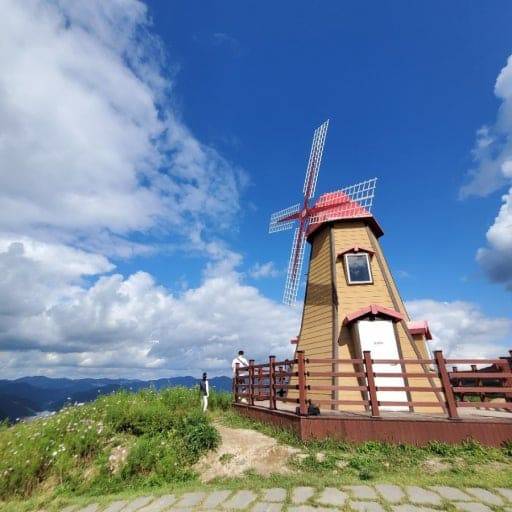 푸른 하늘을 배경으로 서 있는 대형 풍차와 드넓은 꽃밭, 그리고 일출·일몰 시간대 하늘 아래 펼쳐지는 일명 ‘운해(雲海)’ 풍경은 사진 촬영지로서 특히 인기입니다.
