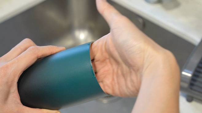 다음은 바로 깊숙한 텀블러를 세척할 때 유용한데요. 이렇게 입구가 좁고 목이 긴 텀블러는 속까지 청소하기가 여간 쉽지 않아요.