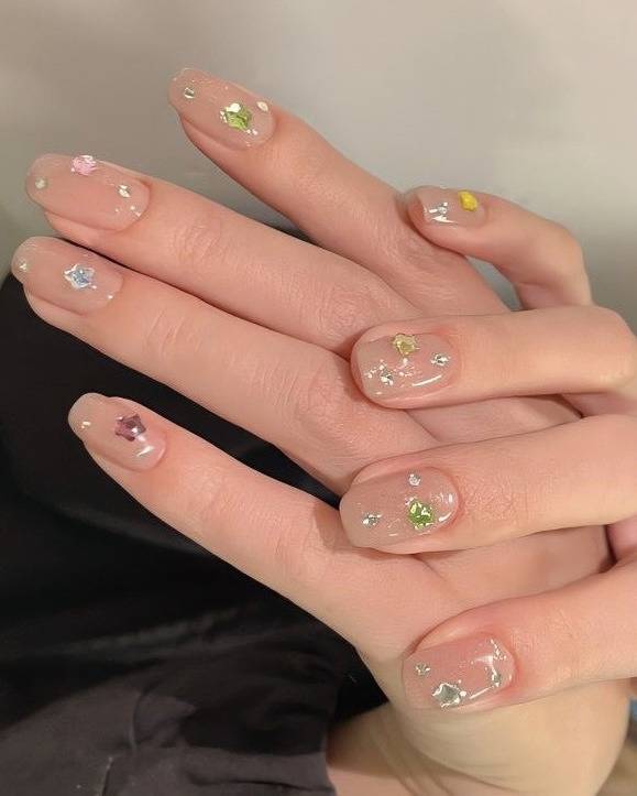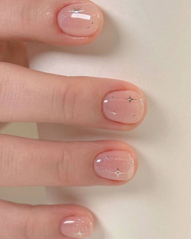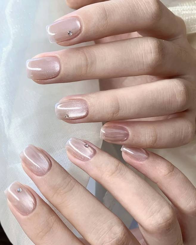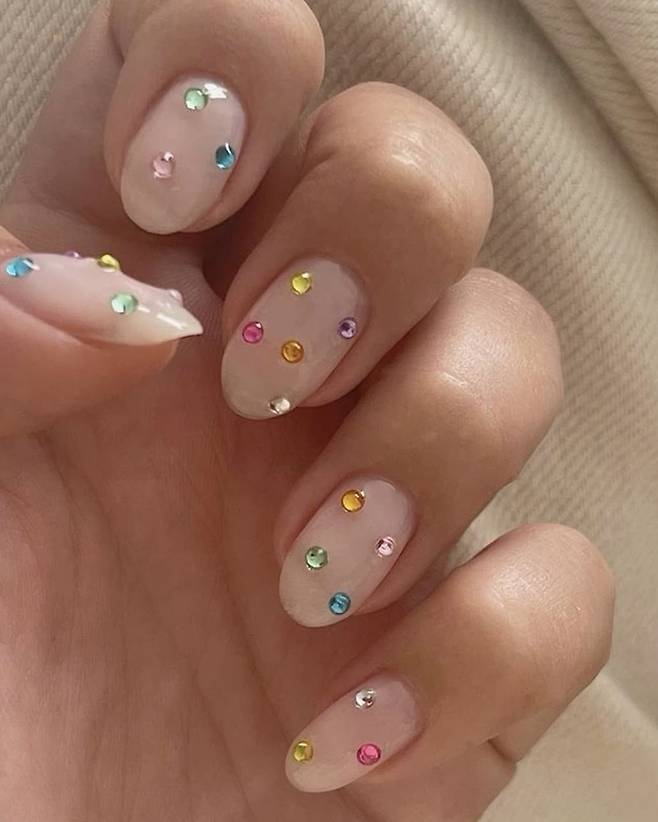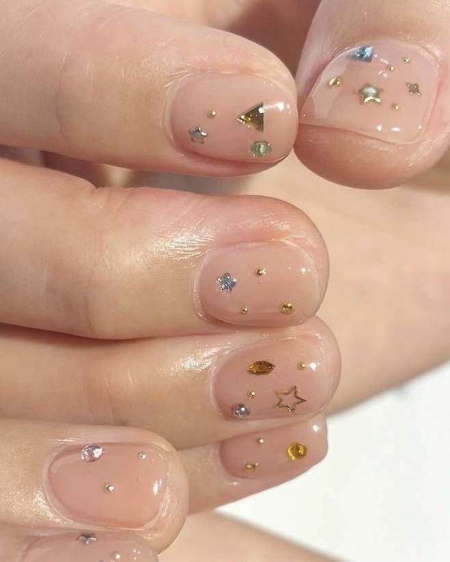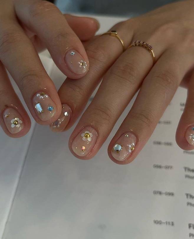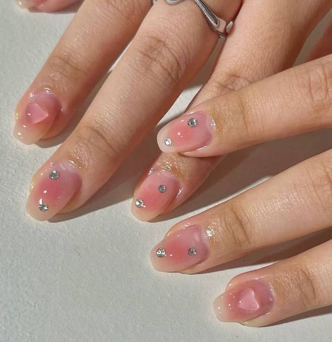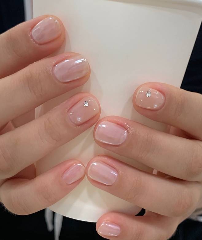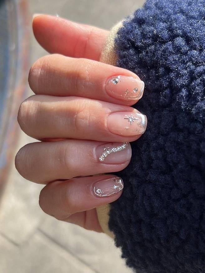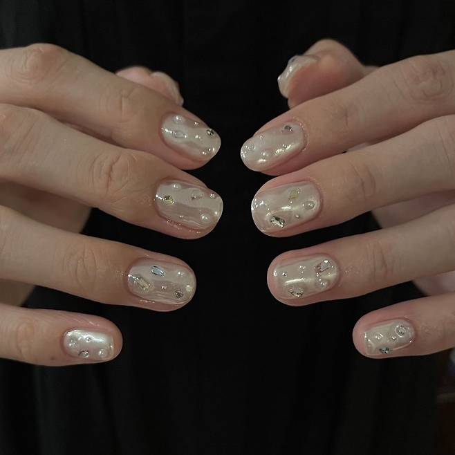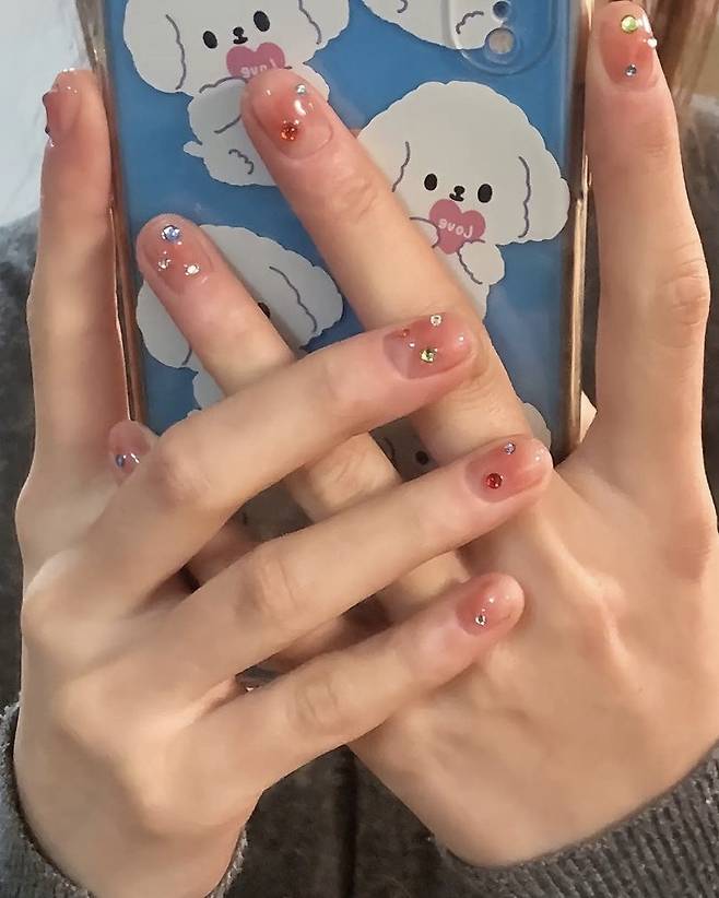 손 끝에 큐빅 네일을 총총