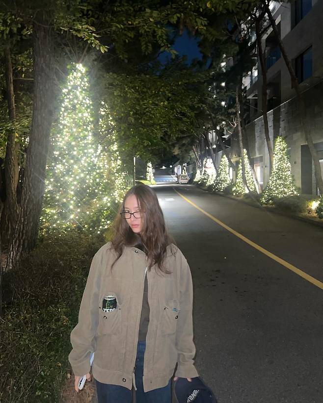 마지막사진에서 정수정은 아웃도어 감성이 느껴지는 캐주얼 룩을 선택했다. 베이지 컬러의 오버사이즈 재킷과 데님 팬츠를 매치해 실용적이고 편안한 스타일을 연출했다. 재킷의 포켓 디테일은 독특함을 더하며, 손에 든 소품들이 자연스러운 분위기를 자아낸다. 야외에서 빛나는 조명과 어우러져 따뜻한 겨울 감성이 느껴진다.